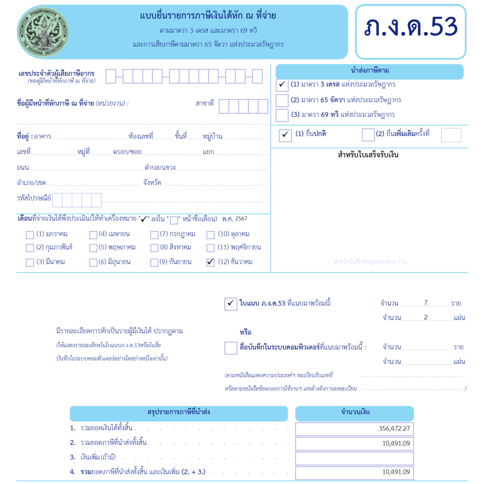 - จัดทำและยื่นแบบภาษีประจำเดือน (ภงด. 1, ภงด. 3, ภงด. 53, ภพ. 30)